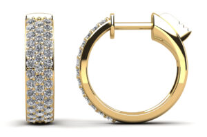 These beautiful diamond hoop earrings feature 3 rows of diamonds in a staggered pattern. You can customize them by metal type and diamond quality and make them your own.
