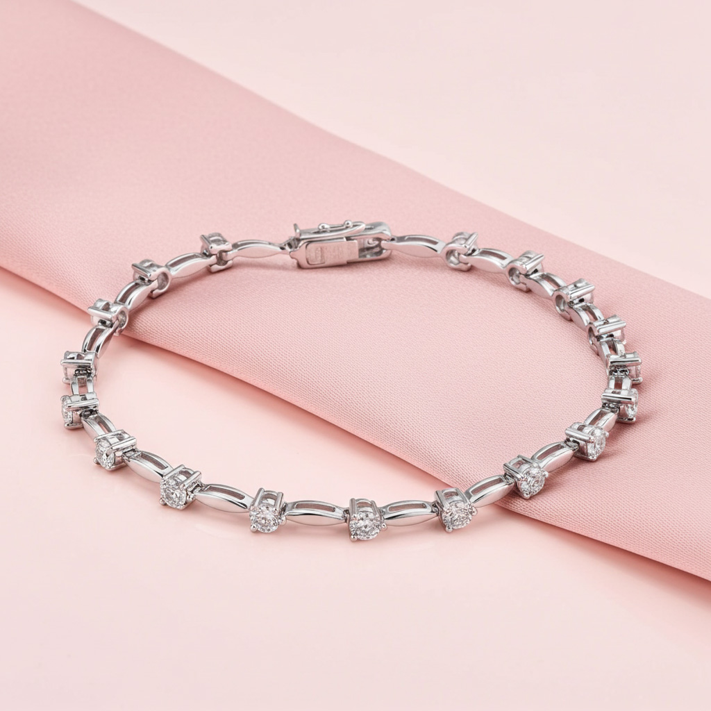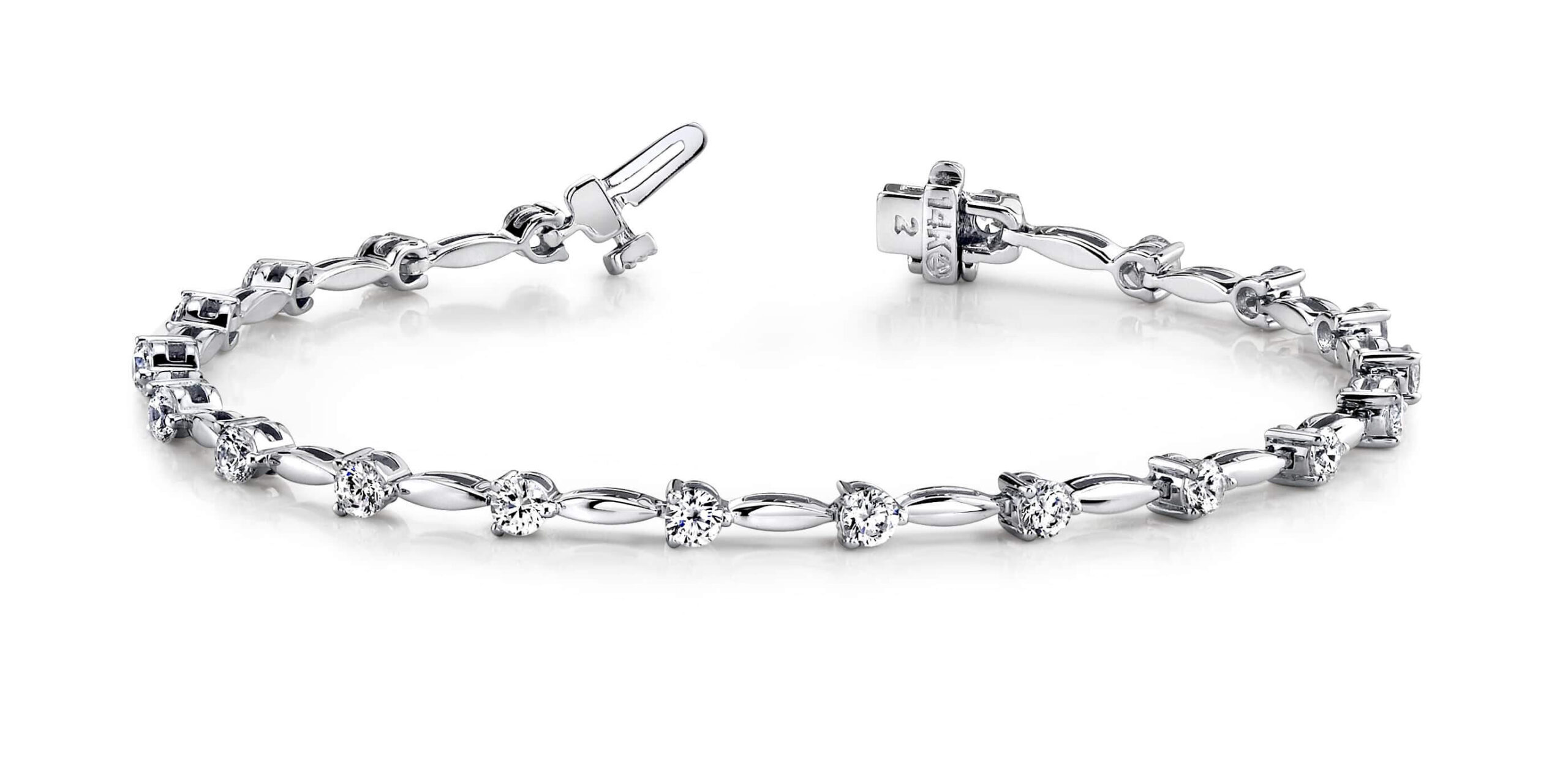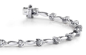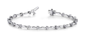 Our master design team has taken two classic styles and combined them with brilliant results! This bracelet, available in your choice of 4 different sizes is sure to please! It features lovely, brilliant diamonds, alternating with links of gleaming gold or platinum – the choice is yours! The links are an elongated oval – and point perfectly at each end to yet another incredible diamond! Choose either 1,2,3, or a fabulous 4 carats total diamond weight. Simply incredible!