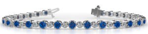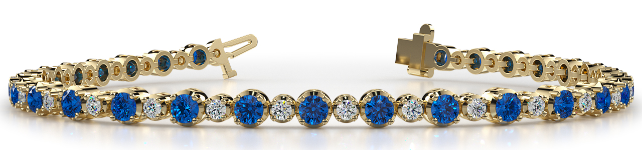 Elevate your elegance with this dazzling diamond and gemstone tennis bracelet, featuring a captivating pattern of alternating round diamonds and gemstones in two distinct sizes. Each stone is expertly set to enhance its brilliance, creating a rhythmic sparkle that flows gracefully around the wrist. Crafted with precision and timeless style, this bracelet offers a modern twist on a classic favorite. Ideal for special occasions or everyday luxury, it?s a refined statement piece that catches the eye from every angle. Customize your bracelet by choosing the metal type, total carat weight, diamond and gemstone quality, and length for the perfect fit and finish.