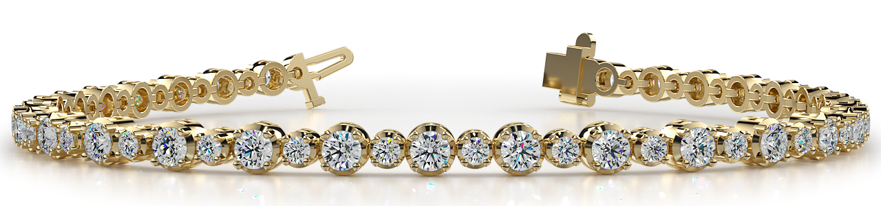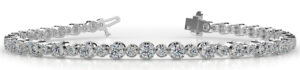 Elevate your elegance with this dazzling diamond tennis bracelet, featuring a captivating pattern of alternating round diamonds in two distinct sizes. Each stone is expertly set to enhance its brilliance, creating a rhythmic sparkle that flows gracefully around the wrist. Crafted with precision and timeless style, this bracelet offers a modern twist on a classic favorite. Ideal for special occasions or everyday luxury, it?s a refined statement piece that catches the eye from every angle. Customize your bracelet by choosing the metal type, total carat weight, diamond quality, and length for the perfect fit and finish.