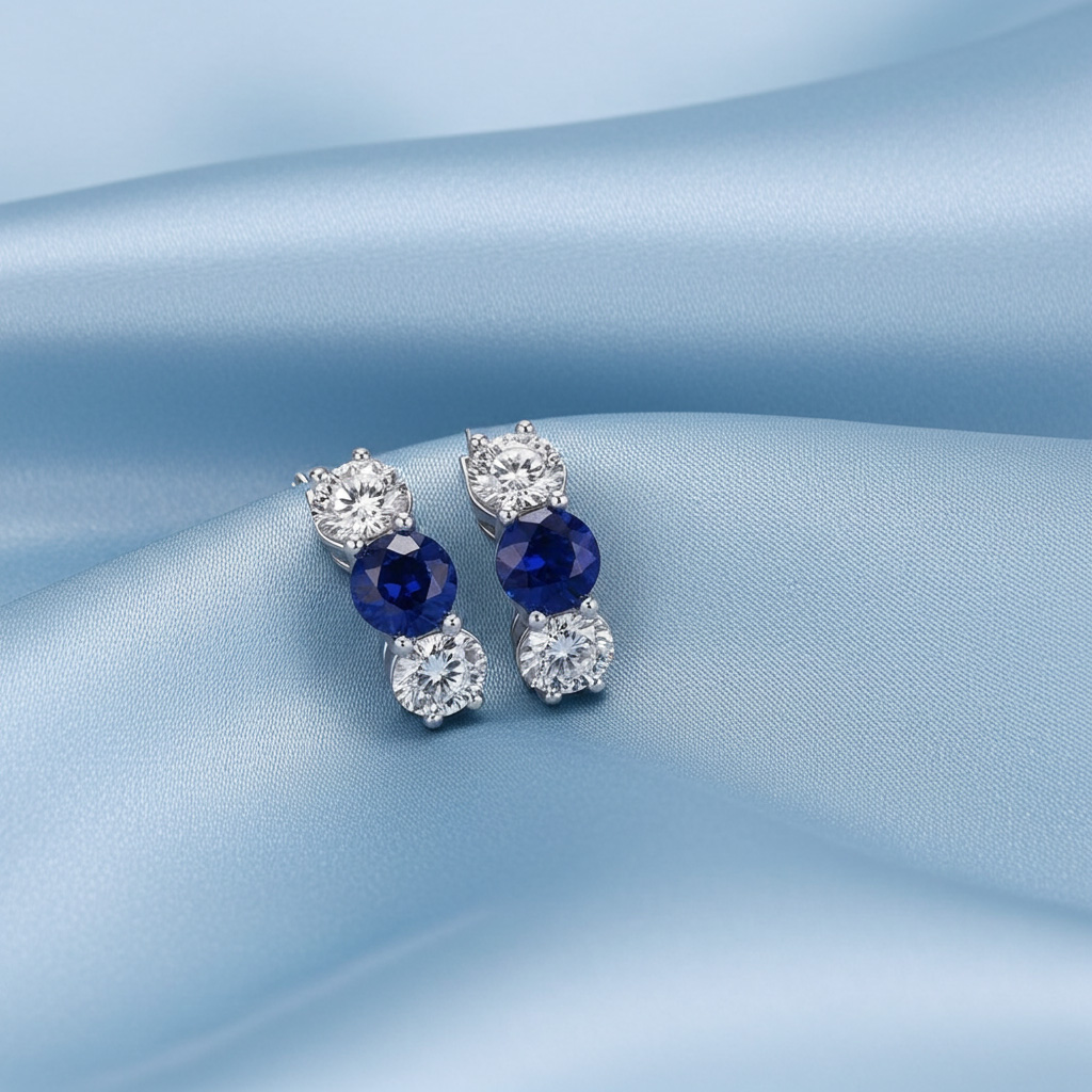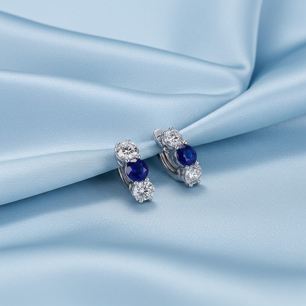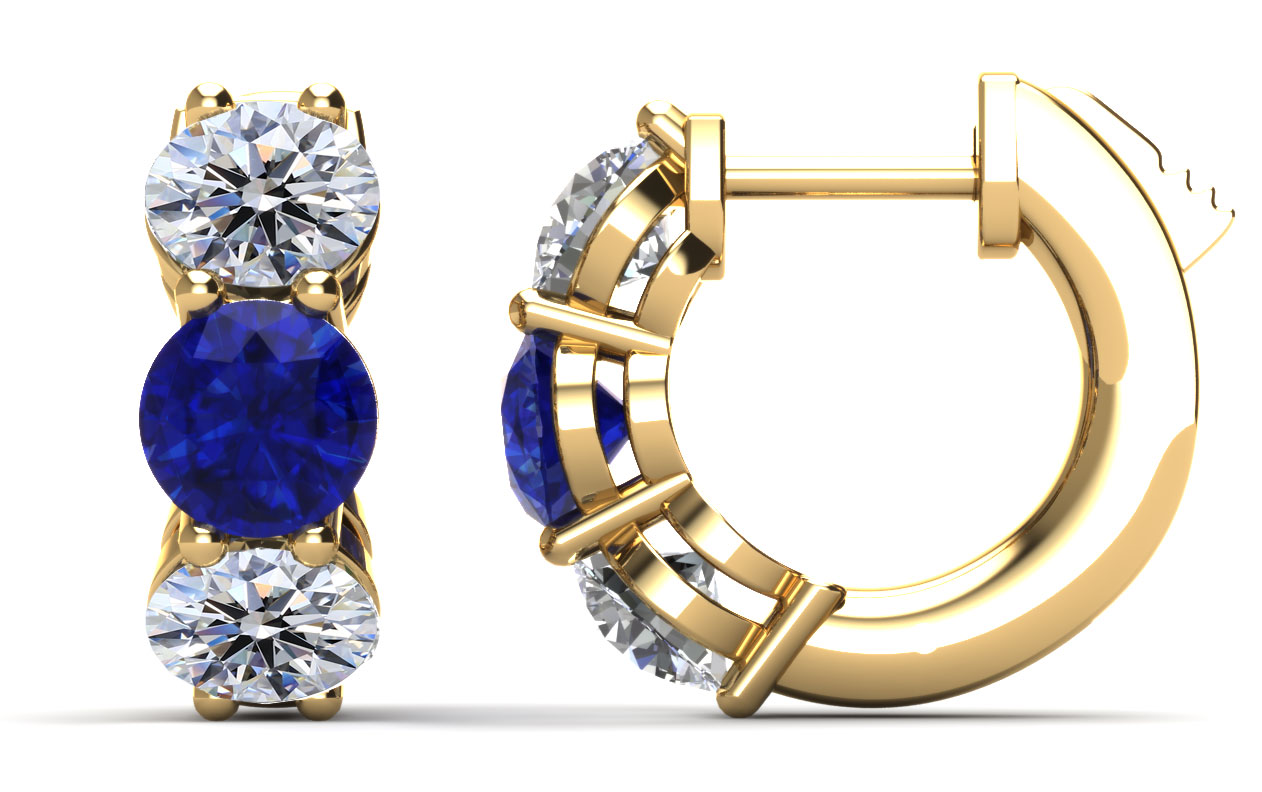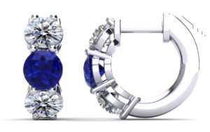 These stunning diamond and gemstones hoop earrings feature two round gemstones and four brilliant cut round diamonds, three on each ear. You may customize these earrings by selecting the type of metal of your choice, diamond total carat weight, diamond quality, and type of gemstones.