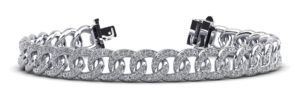 This beautiful bracelet design features graduated brilliant cut round diamonds. It is available in 2 total carat weights and various metal types. You may also select the diamond quality of our choice.