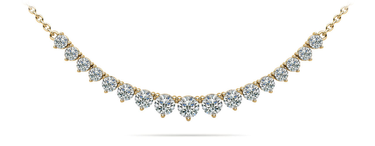 The addition of a stylish chain to one of our most luxurious red carpet necklaces featuring stunning round diamonds makes this an affordable alternative. Select yours in your choice of 14k or 18k yellow, rose or white gold or platinum
