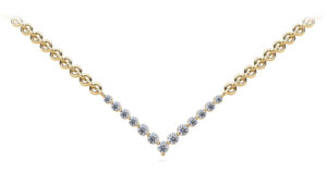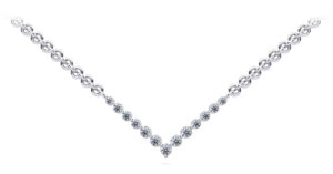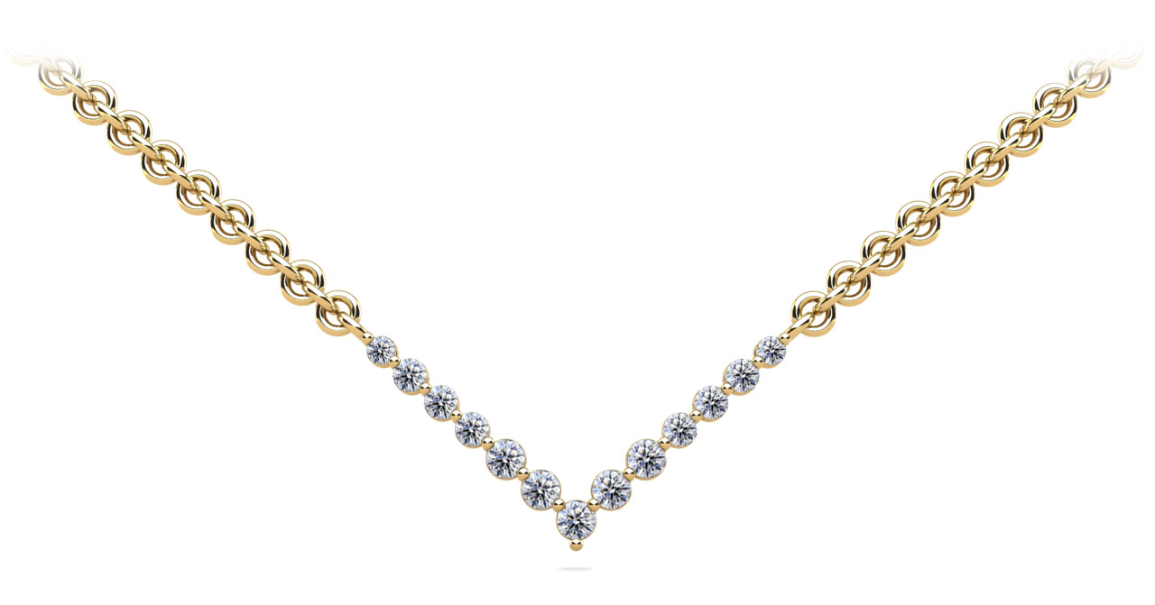 This beautiful diamond necklace features 13 brilliant cut round diamonds all set together in a V-Neck shape design. You may customize this necklace by selecting the type of metal, chain length, and diamond quality.
