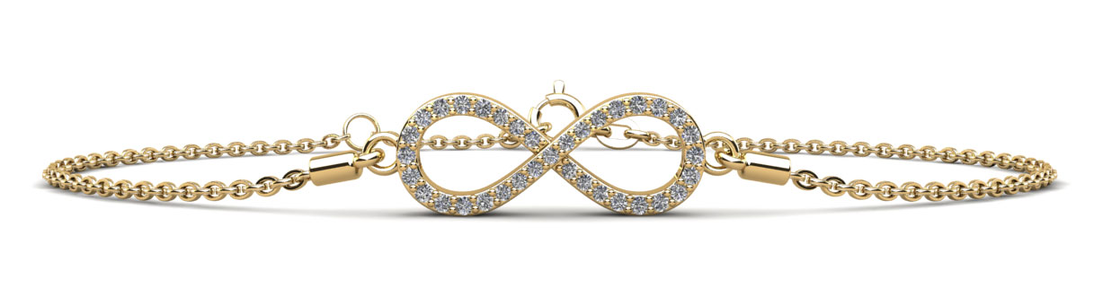 This beautiful infinity bracelet, featuring 35 diamonds, is the perfect symbol of eternal love, or hope. The bracelet adjusts to two different lengths to fit your wrist comfortably. Choose yours in 14kt or 18kt yellow, white or rose gold or platinum.