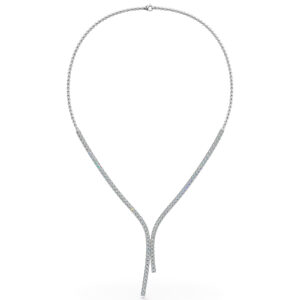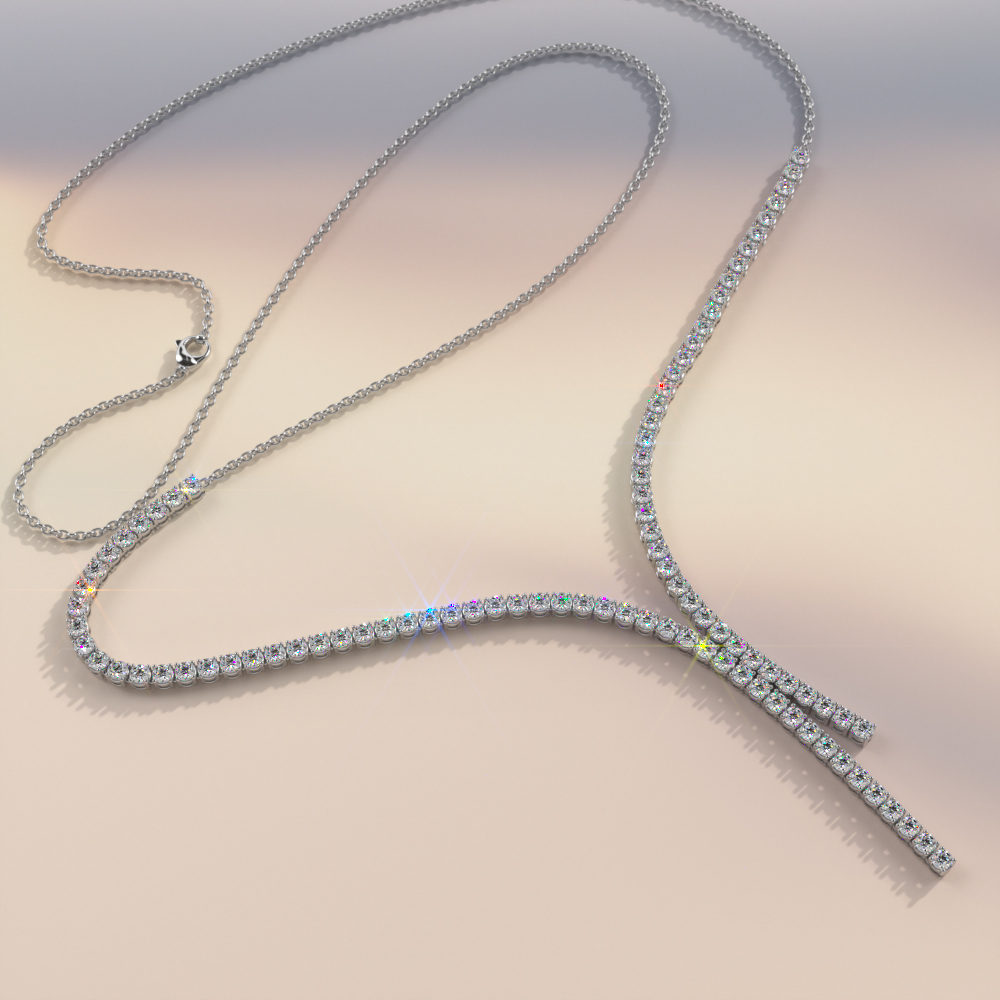 The Diamond Lasso Necklace is a stunning blend of elegance and modern sophistication. Featuring a delicate chain, this necklace showcases a sleek, lasso-style pendant adorned with sparkling diamonds. The pendant gracefully wraps around, catching the light from every angle and adding a touch of brilliance to any outfit. Perfect for both everyday wear and special occasions, this necklace exudes timeless charm and refined style.