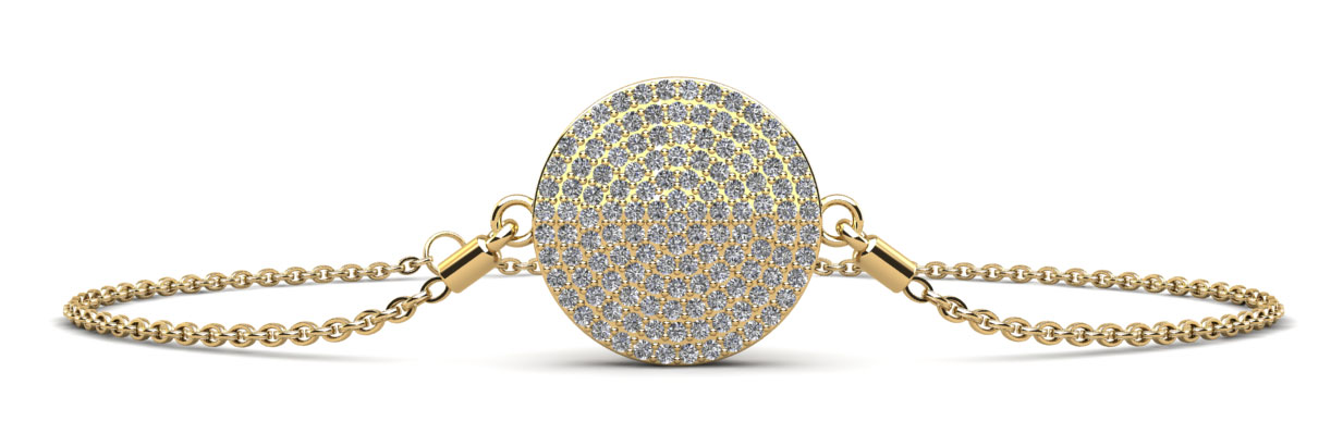 Enjoy the luxury of diamonds with this remarkable diamond adjustable bracelet. The circular design is set with sparkling round diamonds to catch the light and your eye. The bracelet adjusts to two different lengths to fit your wrist comfortably. Customize your bracelet by selecting the type of metal and diamond quality to truly make it your own.