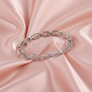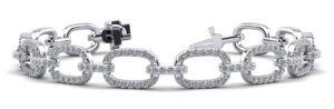 This elegant bracelet features a unique design configuration of large and small oval-shaped diamond links connected together. You may customize the length of the bracelet, the type of metal, and diamond quality.
