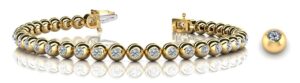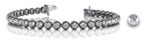 Available in 5 different sizes, this is a fabulous classic! Sparkling, round, bezel set diamonds are linked side by side, and it’s available in sizes ranging from 1 to 5 carats total diamond weight! You can also choose this in gold or platinum and sits flat on the wrist. This is truly the perfect strand of stones!