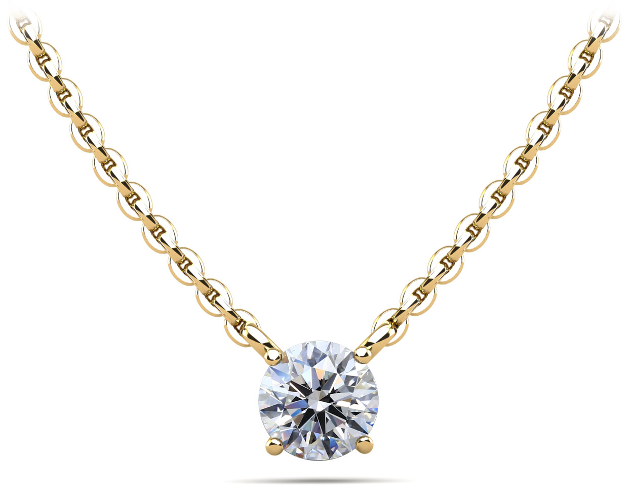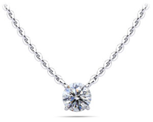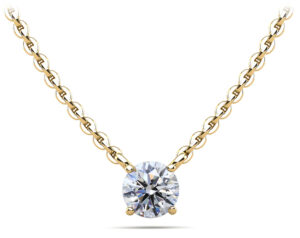 This is a classic must have diamond solitaire pendant. It features a brilliant cut round diamond and offered in many sizes. You can further customize it by selecting the type of metal, diamond quality and chain length.