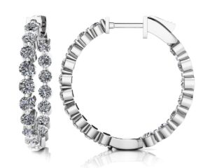 These will be your favorite! Expertly set round-cut diamonds brilliantly sparkle to form an easy to wear hoop earring with our easy to use and secure push button closure. Approximately .90 inches in height and available in a wide selection of carat weights.