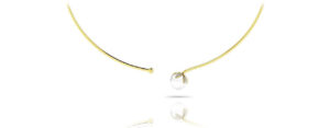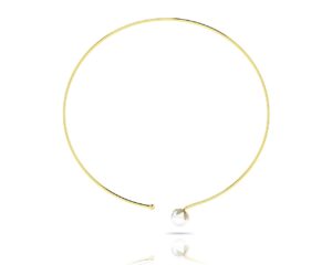 Capture your unique look with this beautiful gold and pearl choker style necklace. A fine gold wire wraps elegantly around the neck to display a luxurious pearl and gold ball open design.