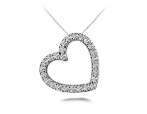 Wearing a heart is a very special thing. It conveys love, devotion, and so much more! This pendant does all that – beautifully! Available in 3 different sizes, ranging from half a carat to 1 carat total diamond weight, you’ll find one that shows your love – and fits your pocketbook. You can choose either gold or platinum, so go ahead & show off your love with this incredible piece today!