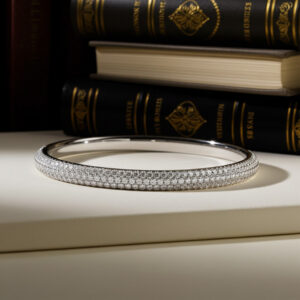 This gorgeous pave set bangle bracelet has three rows of diamonds set along the top of the bangle. A secure pave setting features between 145 and 189 small diamonds depending on the carat size you choose. Available in 1.89, 2.45 or 3.19 total diamond carat weights, you can create the perfect bangle bracelet when you select gold or platinum and diamond quality. A chic addition to any jewelry wardrobe!