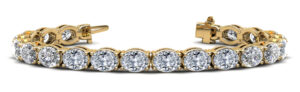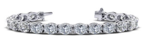 This stunning tennis bracelet features oval cut diamonds set in a line. The bracelet is designed to fit closely around the wrist, and the oval cut stones are arranged in a continuous pattern, creating a beautiful and elegant look. With its timeless style and sparkling beauty, an oval cut tennis bracelet is sure to become a cherished addition to any jewelry collection. You may customize this bracelet by selecting the type of metal, diamond quality, total carat weight, and length.