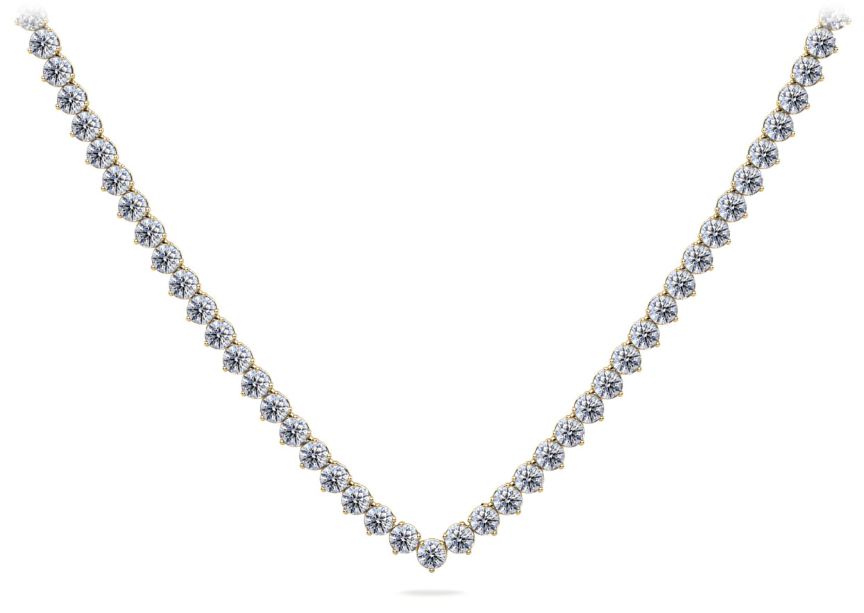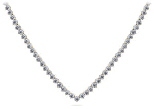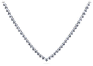 This gorgeous diamond V-Neck tennis necklace features brilliant cut diamonds of the same size throughout. Each diamond is beautifully set in a three-prong setting which make them appear larger with greater sparkle. You may customize the necklaces by selecting the type of metal, diamond total carat weight, diamond quality and length.